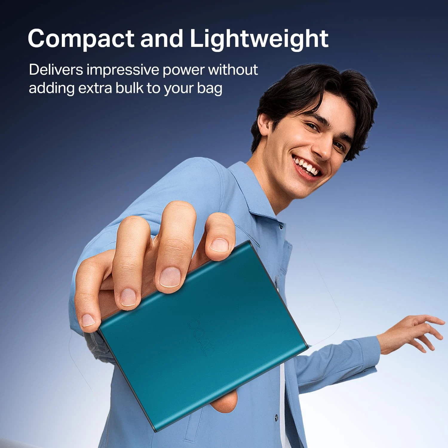 Despite its high capacity, the pocket-size and compact design makes it easy to carry in your bag or backpack. The steel blue finish gives it a premium and modern look that stands out while staying practical.