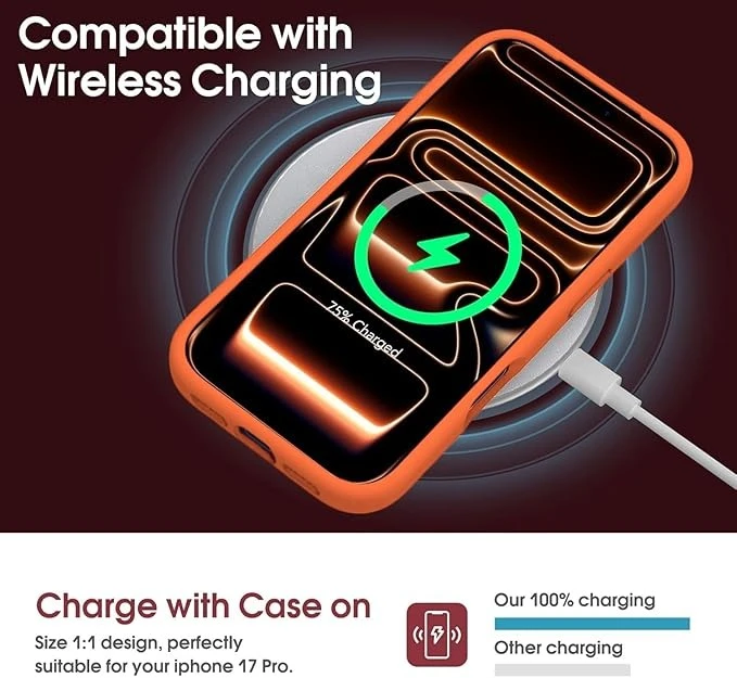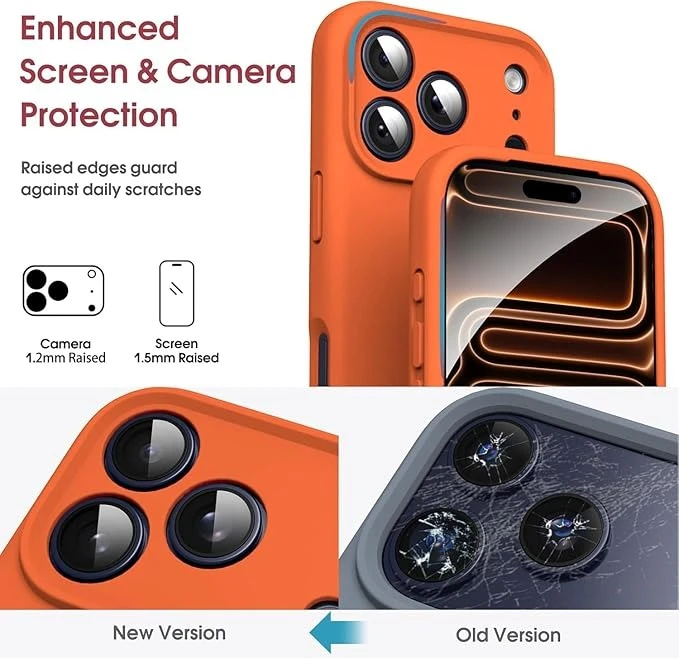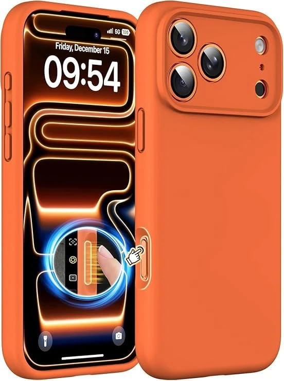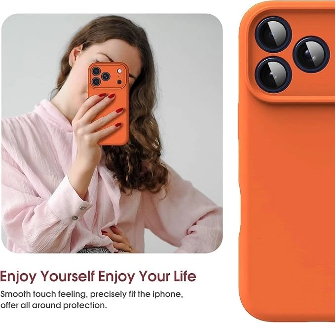 DIZORO Compatible for (iPhone 17 Pro Max Case) Slim Liquid Silicone Case 3 Layers Full Covered Soft Gel Rubber Phone Case Protective Cover - Cosmic Orange
