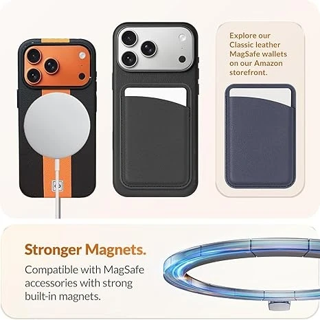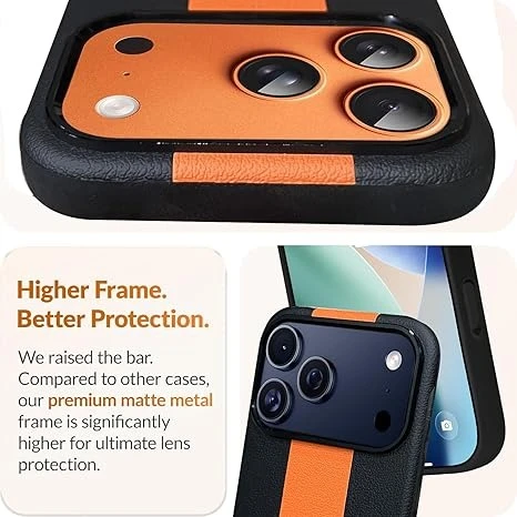 DIZORO Leather Case for iPhone 17 Pro Max, Men Women Luxury Elegant Slim Business PU Cover Soft Non-Slip Grip Shockproof Anti-Scratch Protective Back Cover Black Orange