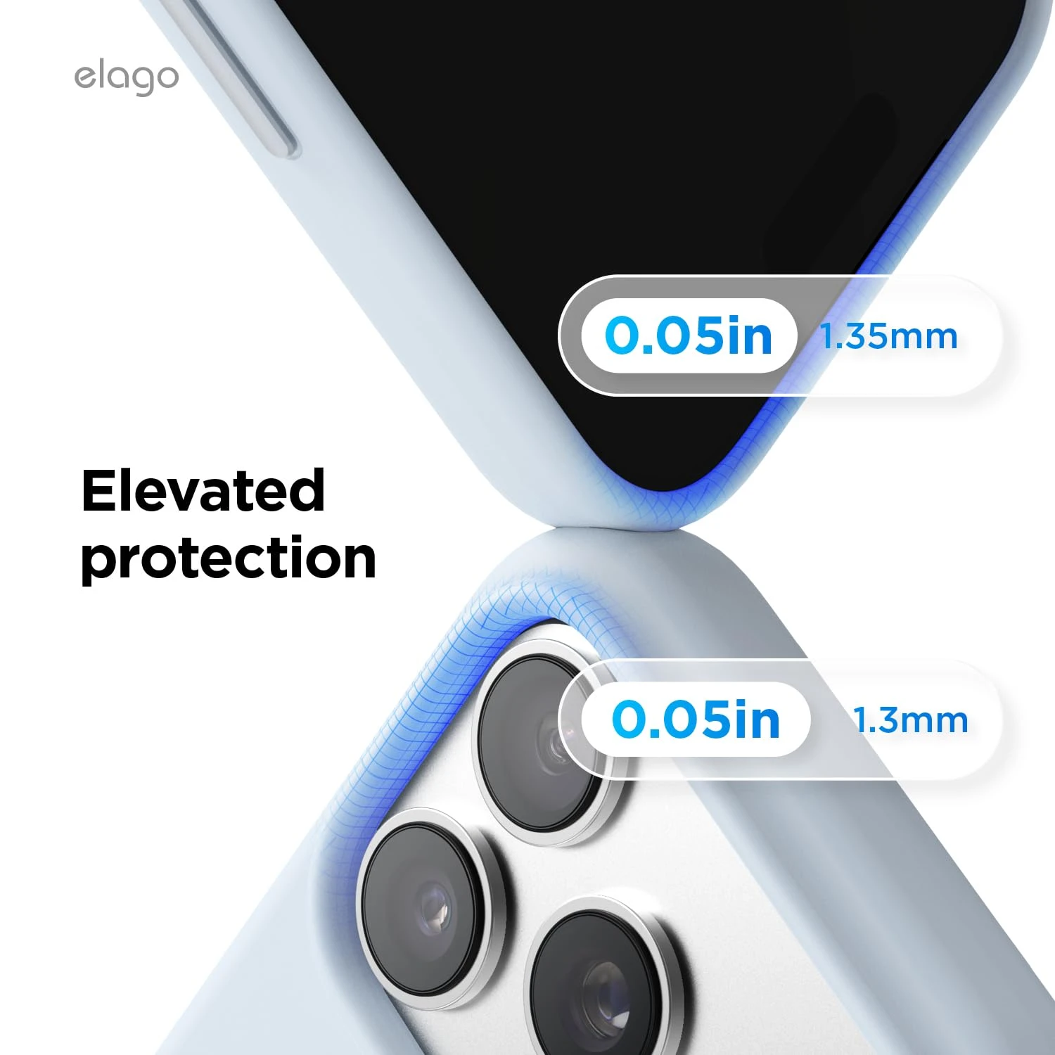 RAISED-EDGE PROTECTION – Full edge coverage design shields every side, port, and button; 1 mm lips lift screen and camera off scratch zones. Slim profile stays wireless-charging & compatible with MagSafe —no case removal required.