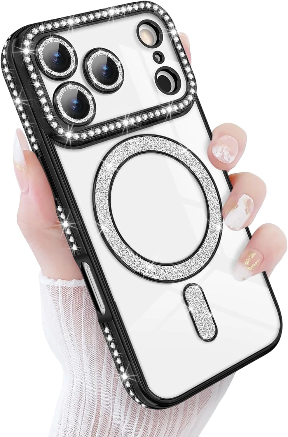 Erams Online【Compatible Model】For iPhone 17 Pro Max :This beautiful and luxurious durable case is only Compatible for Samsung Galaxy the right side of the case frame are not missing rhinestones,it's specifically reserved for the use of lanyards.