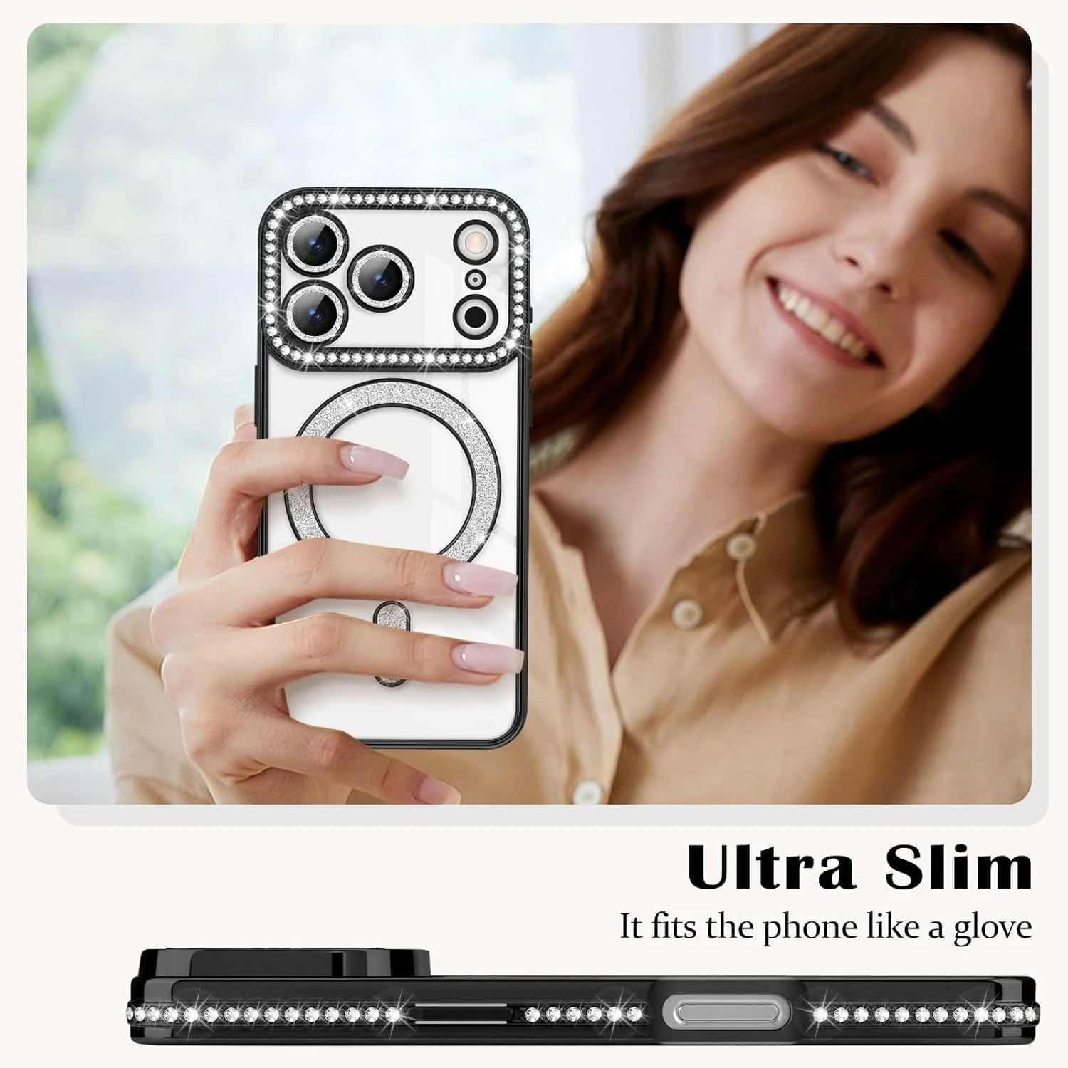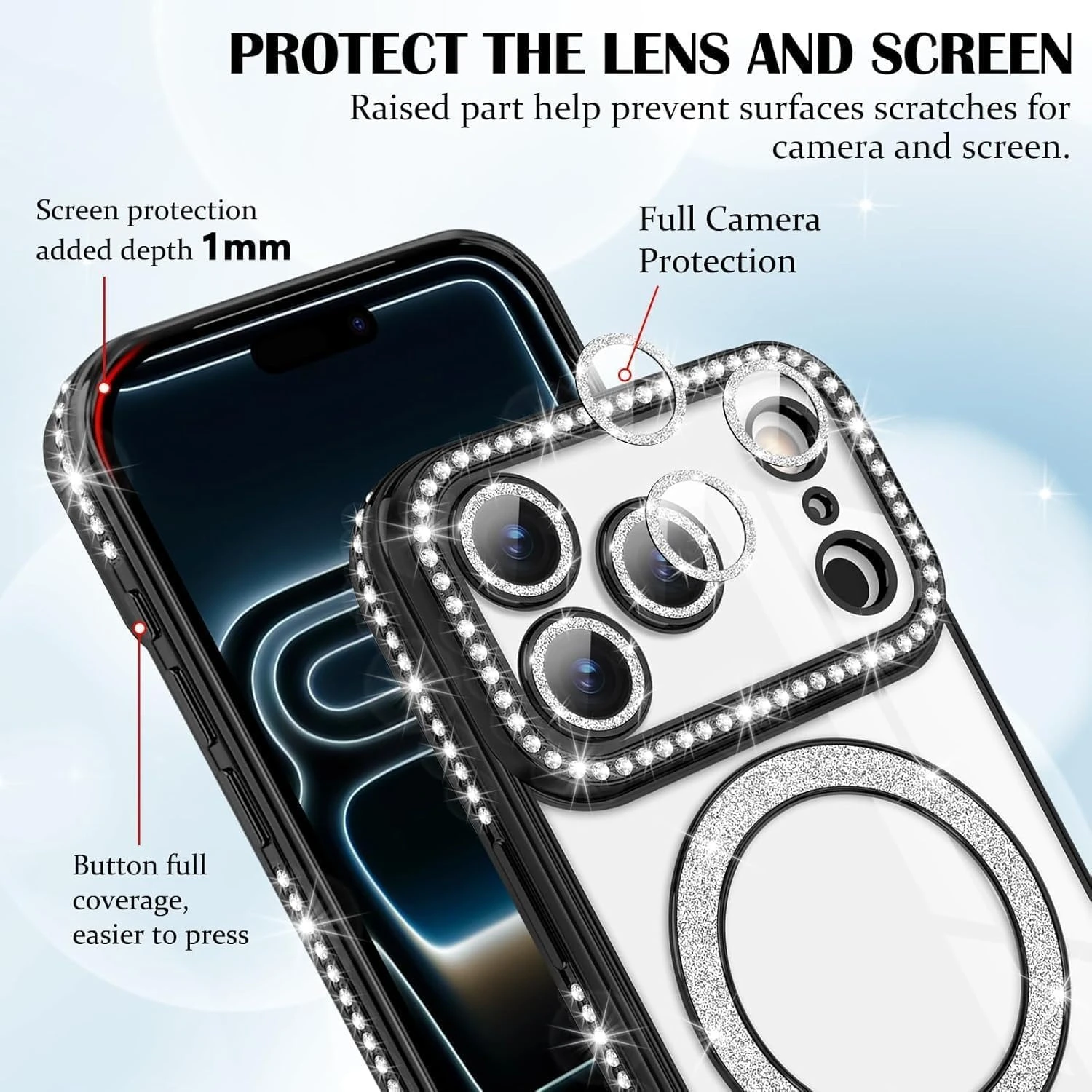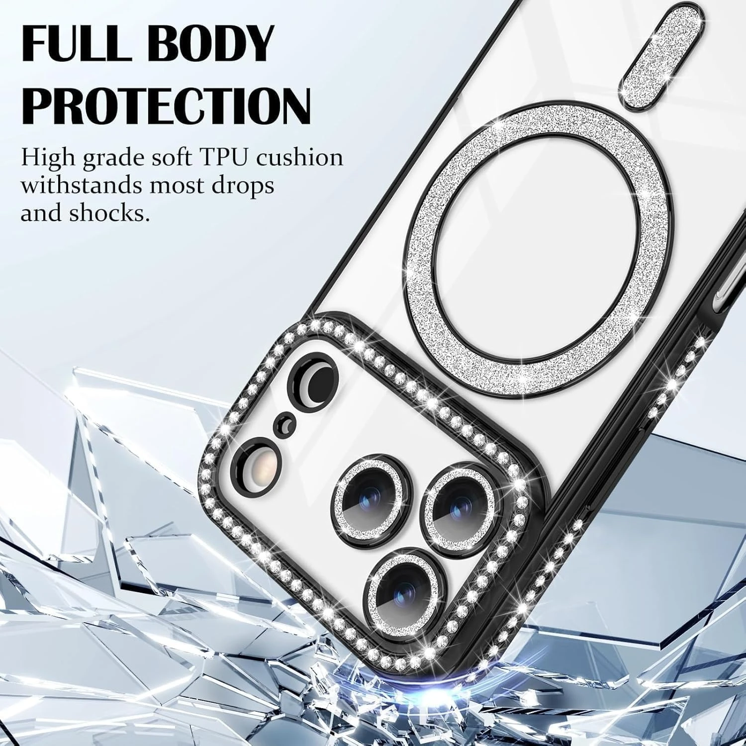 【Screen & Camera Protection】:The premium soft TPU cover provide comprehensive protection for the magnetic sparkly Case,raised screen and camera bezels and anti-slip sides provide extra protection for your screen and camera from scratches and tear.