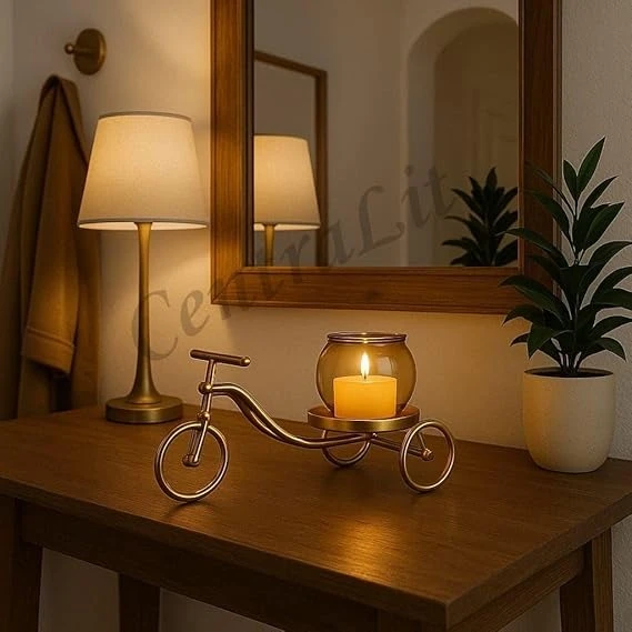 Premium Decorative Showpiece: This elegant gold bicycle tealight holder doubles as a luxurious home decor accent, perfect for living room decoration, festive table centerpiece, showcase styling, balcony decor, or entryway décor.