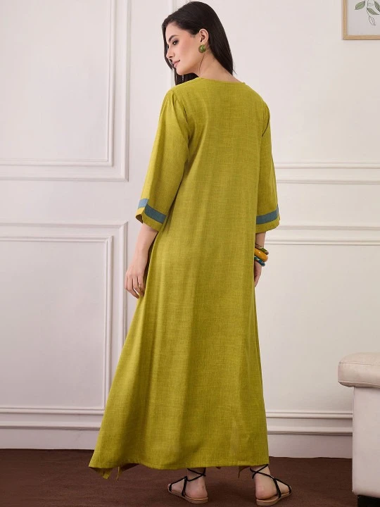 Whether you’re looking for a laid-back look or a stylish vacation outfit, this kaftan maxi dress is a versatile wardrobe essential.