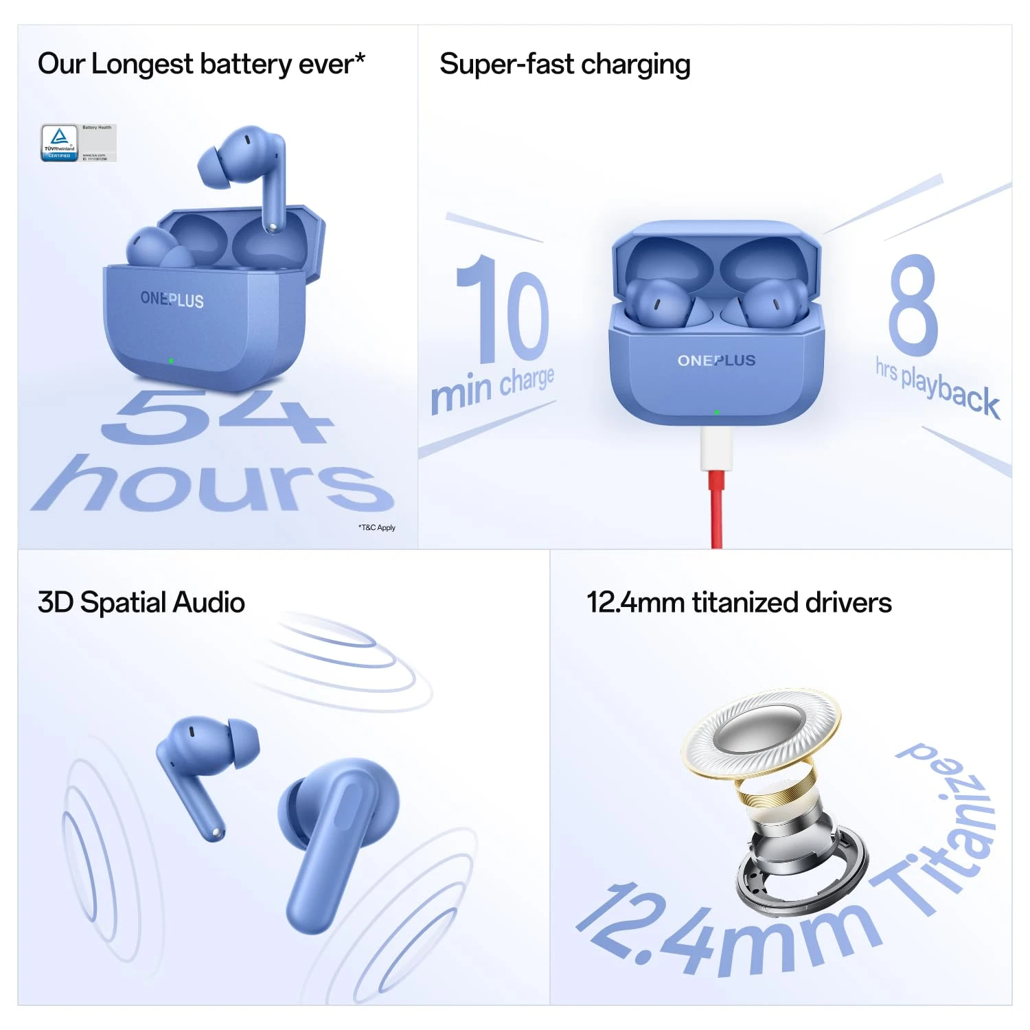 Experience powerful sound and long-lasting comfort with the OnePlus Nord Buds 3r True Wireless Earbuds, designed for users who want premium audio, smart features, and all-day battery life. With up to 54 hours of total playback, these earbuds easily keep up with long workdays, travel, and entertainment.
