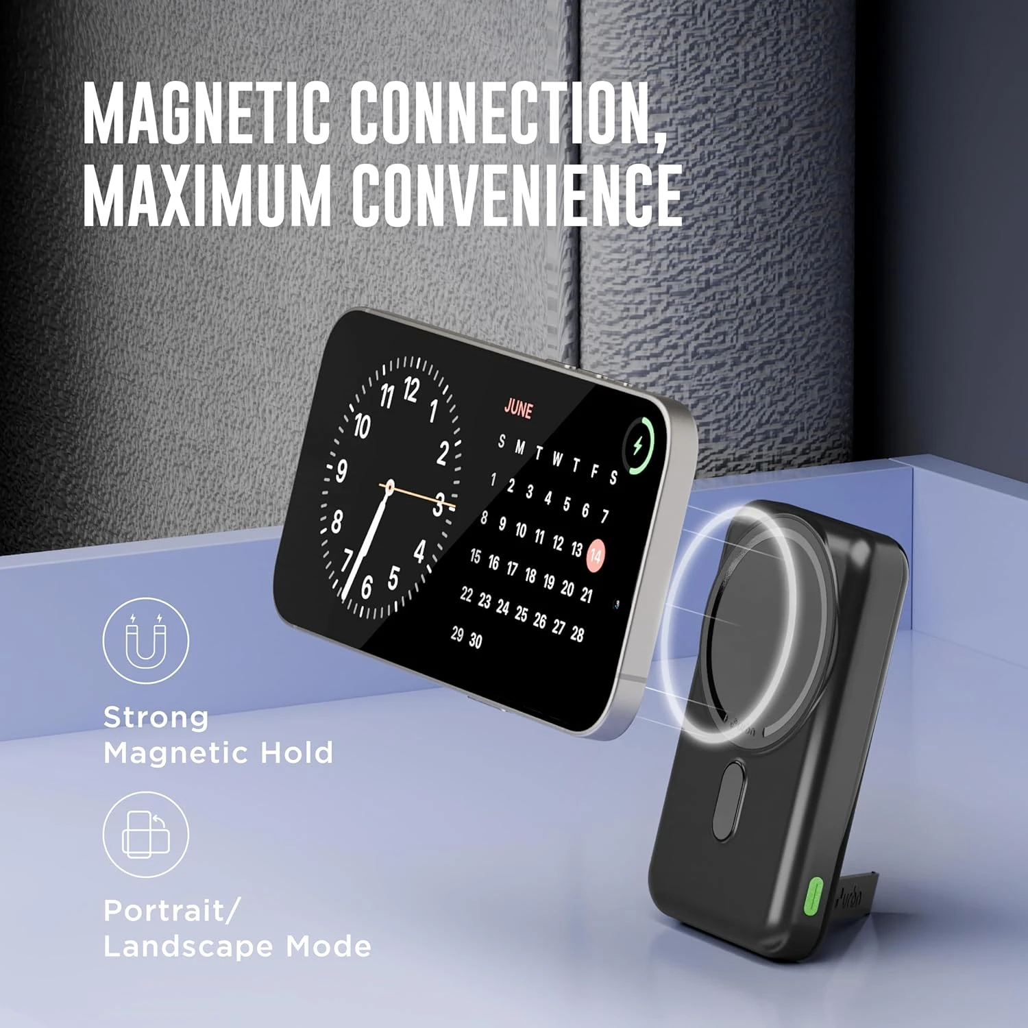 The built-in stand allows you to use your phone comfortably while charging—perfect for video calls, streaming, or browsing. Its strong magnetic alignment keeps your phone firmly in place, even during movement.