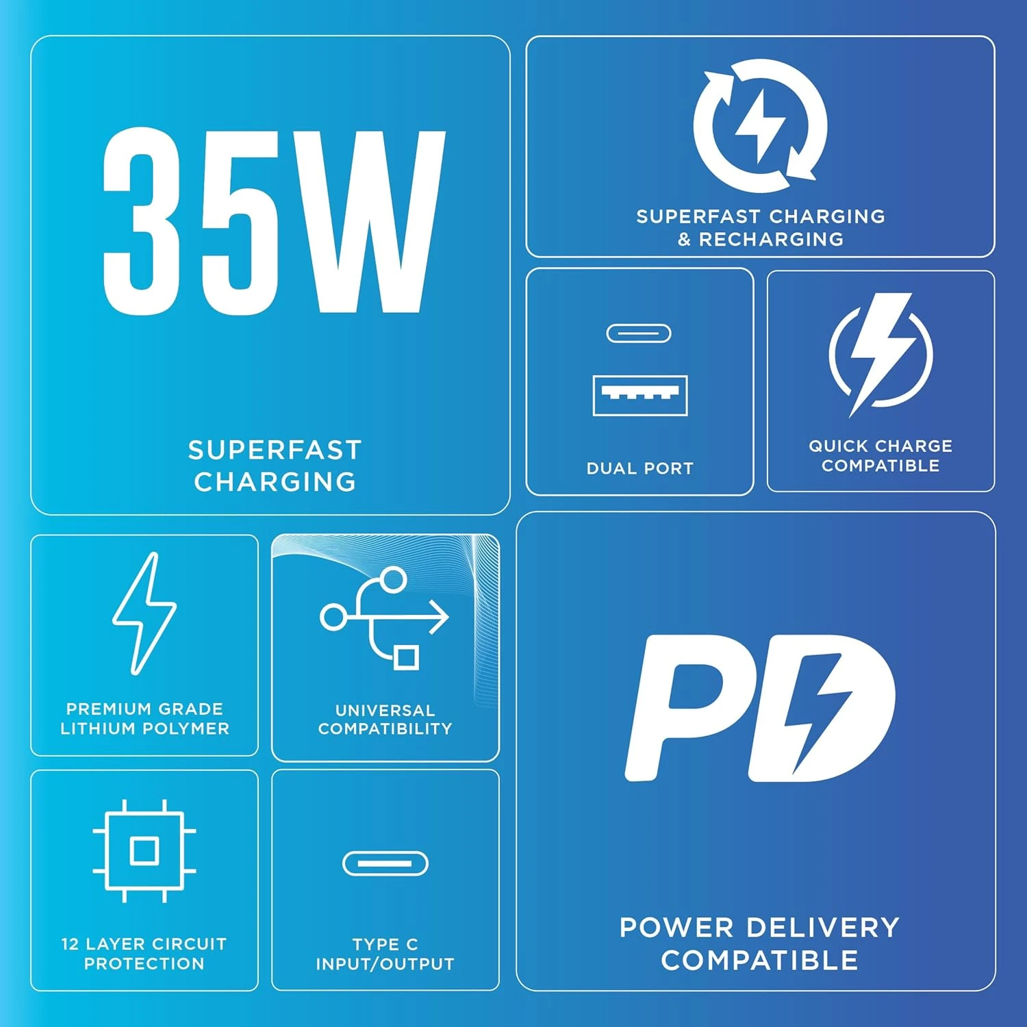 - PD + QC compatible for wide device support