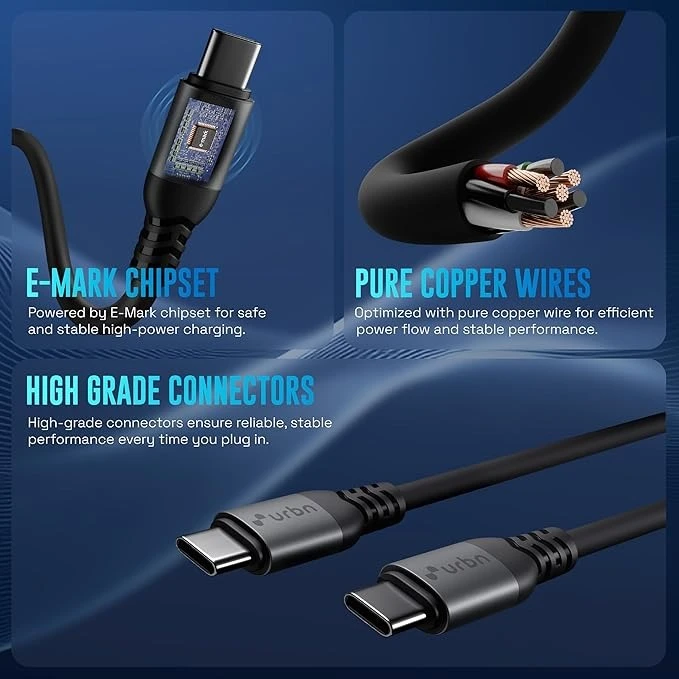 Power up all your USB-C devices faster and safer with the URBN Flex Cord 240W Type-C to C Fast Charging Cable. Designed for high-performance charging, this cable supports up to 240W output and 5A current, making it ideal for smartphones, tablets, laptops, and other USB-C compatible devices.