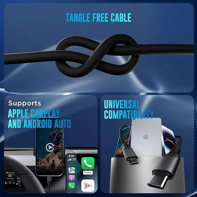 The silicon-coated exterior offers superior flexibility, durability, and tangle-free use, perfect for daily charging at home, office, or travel. With super-fast data transfer, it also supports Apple CarPlay and Android Auto, ensuring smooth connectivity while driving.