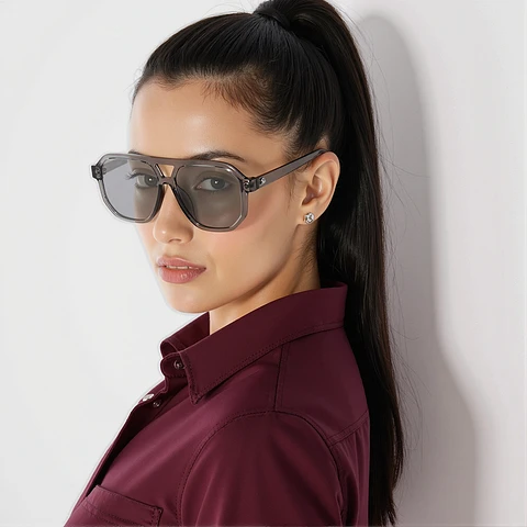Make a bold statement with the Vincent Chase Grey Full Rim Geometric Sunglasses. Designed with a wide frame for a comfortable fit, these stylish sunglasses feature a modern geometric shape that adds a contemporary edge to any outfit. Perfect for everyday wear or special occasions, they combine fashion-forward design with durable construction.