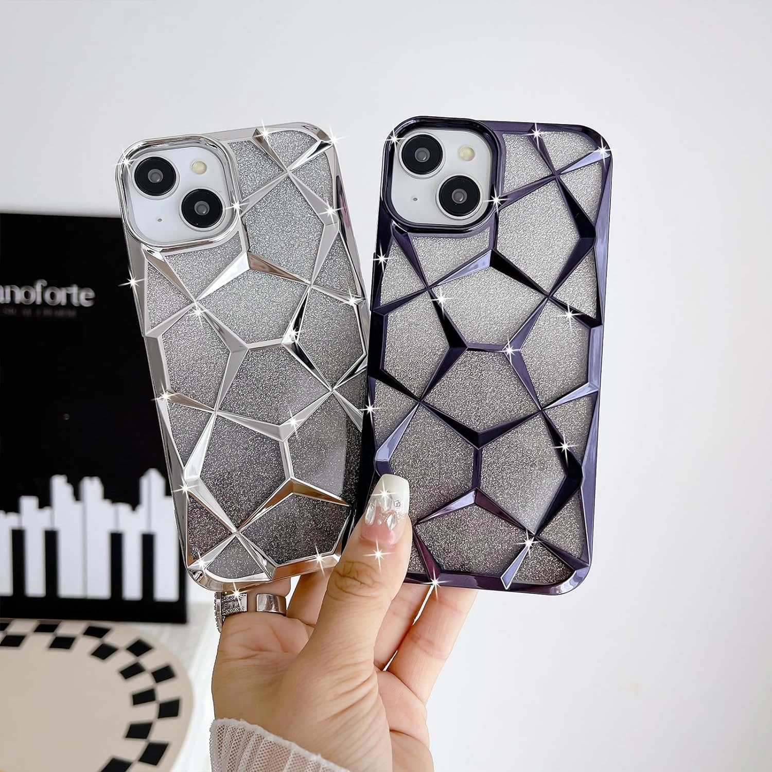 ❥【Attractive Unique Stylish】Fashion 3D Rugged Solid Plaid Design ,Cute diamond lattice with glossy plated, more stylish, fashion, gorgeous. make you get more compliments.Using electroplating technology, beautiful plating gracefully surrounds the bumper edges and camera edges, a perfect demonstration of your love for luxury and fashion.
