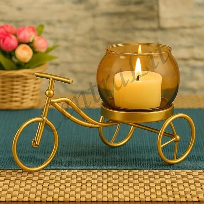 Premium Decorative Showpiece: This elegant gold bicycle tealight holder doubles as a luxurious home decor accent, perfect for living room decoration, festive table centerpiece, showcase styling, balcony decor, or entryway décor.