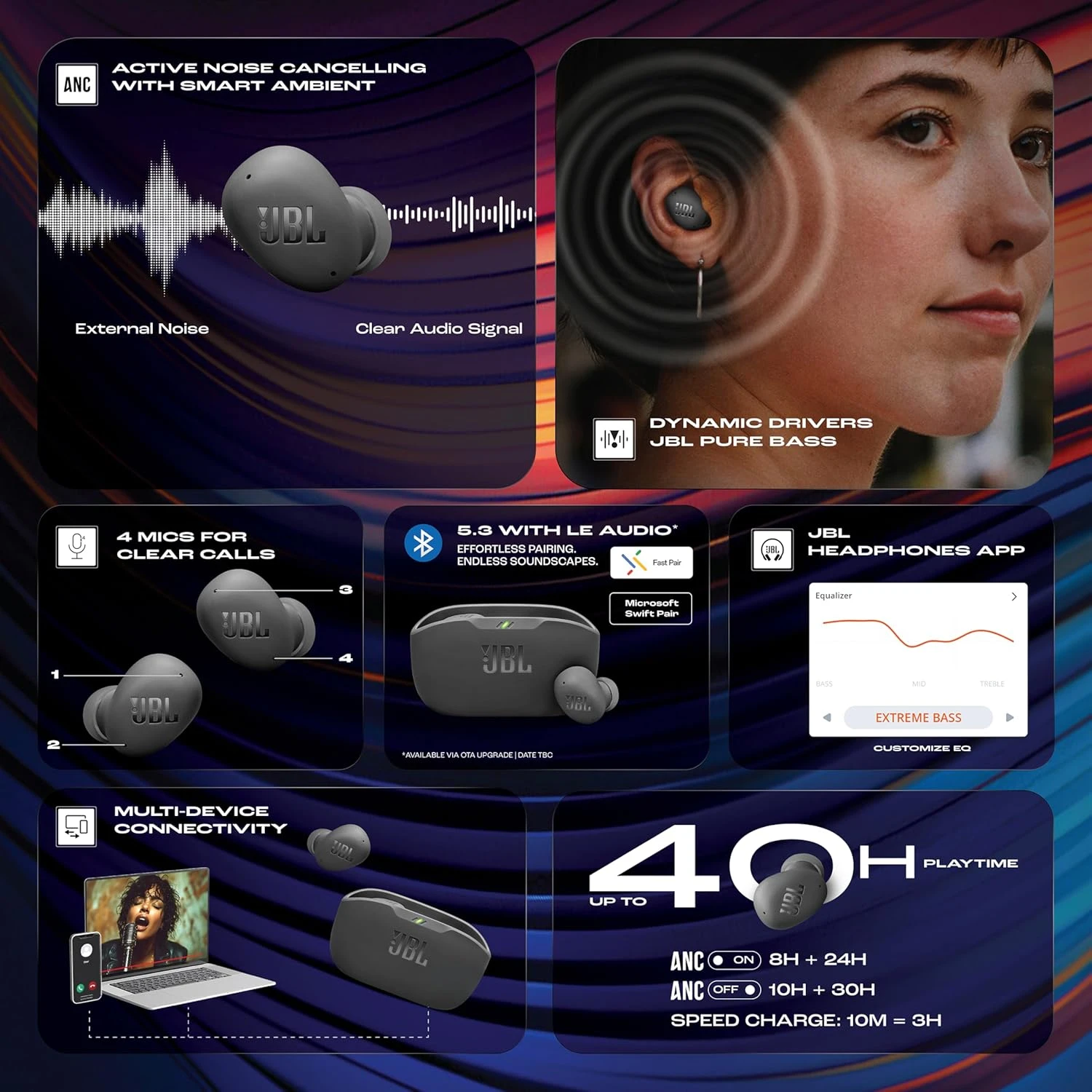 Active Noise Cancellation (ANC) reduces background noise, while the 4 built-in microphones ensure crystal-clear calls in busy environments.