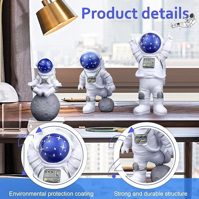 Resin Astronaut Spaceman Statue Ornament Home Office Desktop Figurine Decors Set of 3 - Golden (Bluestar)