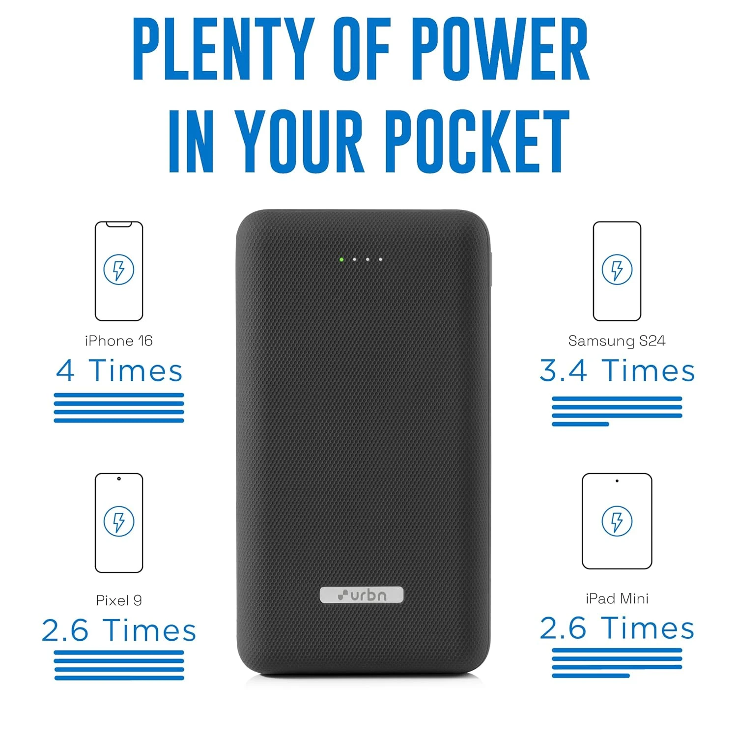 Stay powered anytime, anywhere with the URBN 20000mAh 35W Turbo Fast Charging Power Bank, designed for high-speed charging and heavy daily use. With a large 20000mAh capacity, this power bank keeps your smartphones, tablets, and even laptops charged when you need them most.